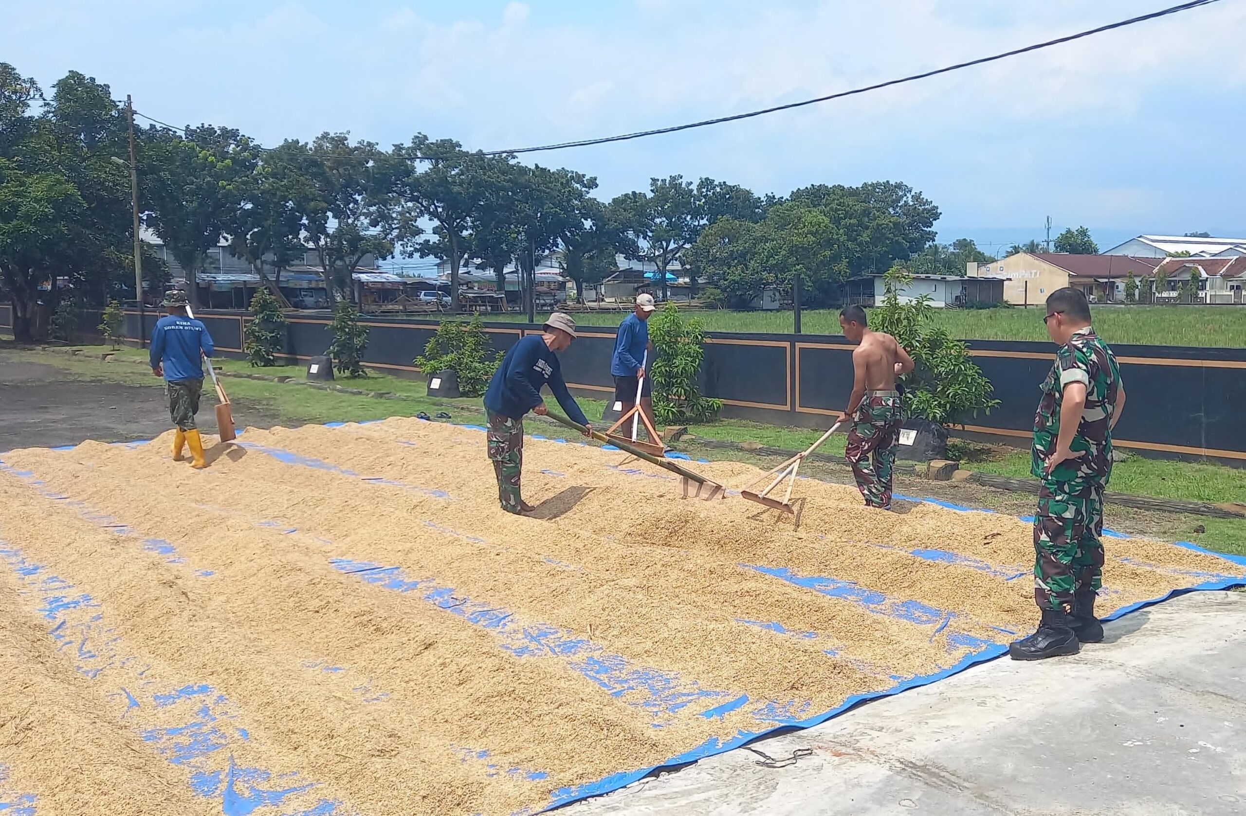 – Dukung program ketahanan pangan nasional, Danrem 071/Wijayakusuma, Kolonel Inf Jamaluddin, S.I.P., M.I. P., turun langsung ke lapangan membantu proses penjemuran gabah hasil panen petani di wilayah Kabupaten Banyumas. Sabtu (12/4/2025).