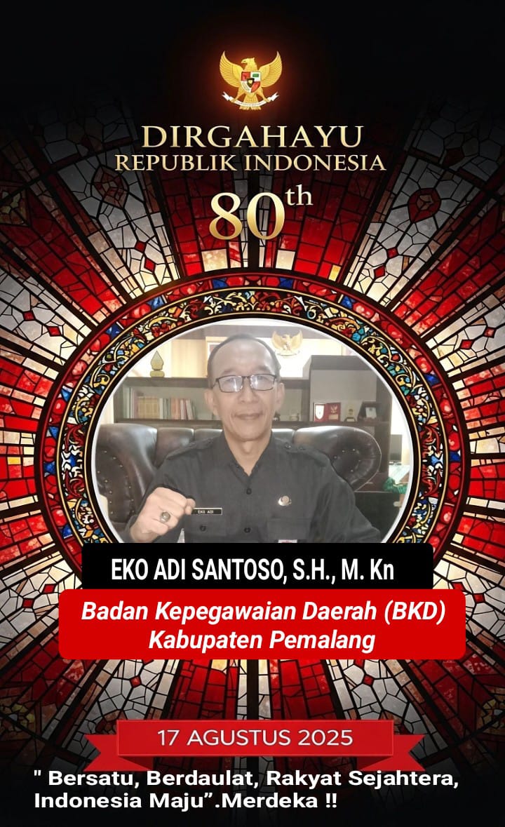 Beranda Berita EKO ADI SANTOSO. S.H., M.Kn BKD (Badan Kepegawaian Daerah) Kabupaten Pemalang, Berita, Seni dan Budaya EKO ADI SANTOSO. S.H., M.Kn BKD (Badan Kepegawaian Daerah) Kabupaten Pemalang,adminAgustus 8, 2025 EKO ADI SANTOSO. S.H., M.Kn BKD (Badan Kepegawaian Daerah) Kabupaten Pemalang, Mengucapkan Dirgahayu RI ke 80 th Bersatu, Berdaulat, Rakyat Sejahtera, Indonesia Maju” Post Views: 307 Navigasi pos Pos sebelumnya Ismun Hadiyo, S.Pd., SD Kepala Dinas Pendidikan Kabupaten Pemalang, MengucapkanPos selanjutnya Festival Karaoke Meriahkan HUT Kemerdekaan RI ke-80 di Sapuro Kebulen Pekalongan Komentar