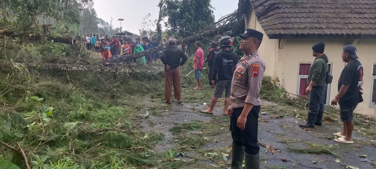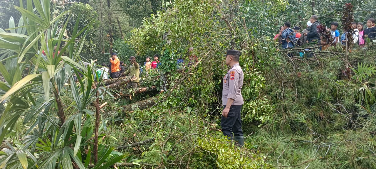 Ia menambahkan, evakuasi dilakukan tim gabungan dari TNI, Polri, BPBD, serta warga sekitar dengan menggunakan chainsaw untuk memotong batang pohon yang menutup jalan.
