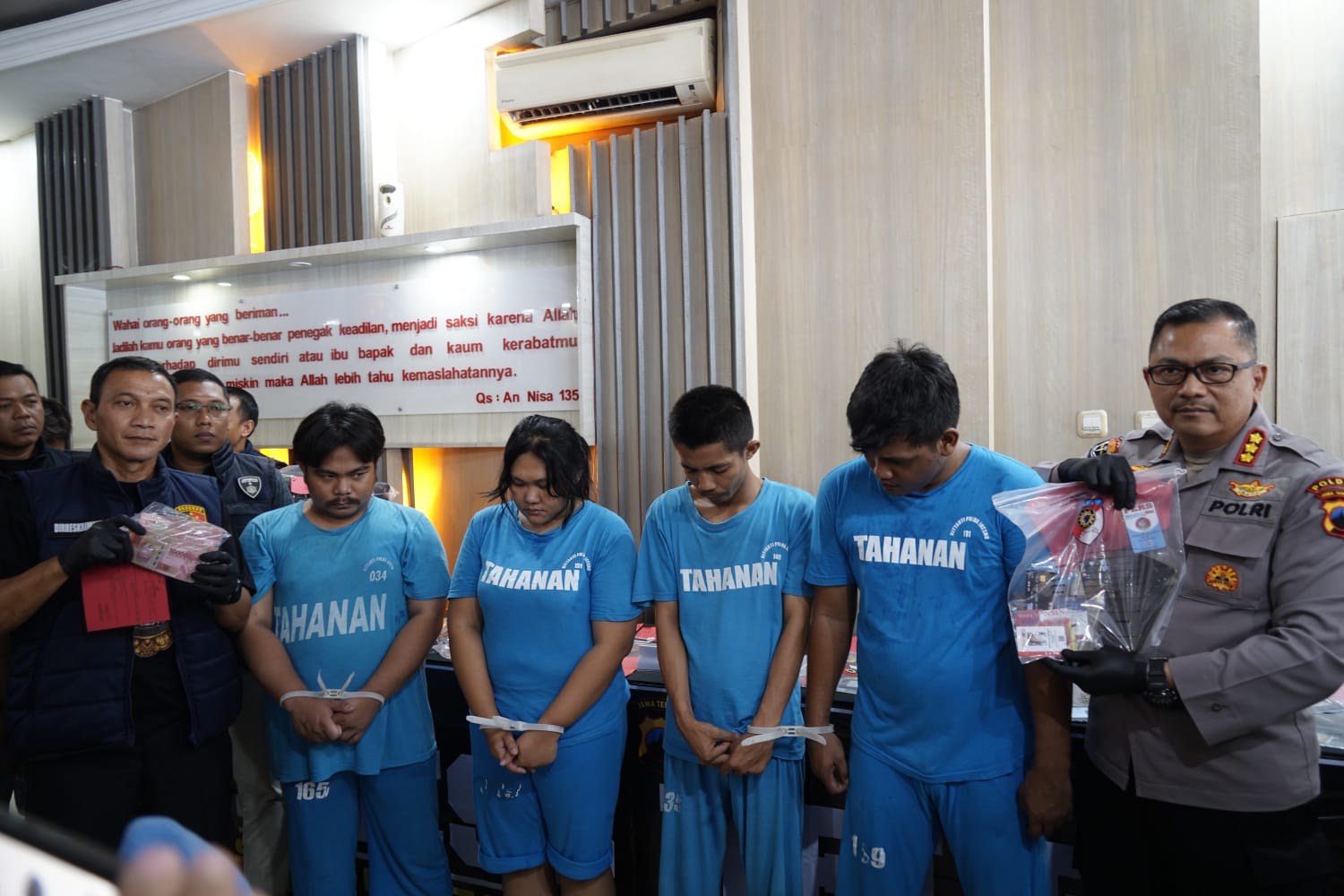Hal ini disampaikan Dirreskrimum Polda Jateng Kombes Pol Dwi Subagio didampingi Kabid Humas Kombes Pol Artanto dalam sebuah Pers Conference ungkap kasus di Loby Mako Ditreskrimum Polda Jateng pada Jumat, (16/5/2025) siang. Dalam keterangannya Kombes Dwi Subagio mengungkapkan bahwa para pelaku terdiri dari tiga laki-laki dan satu perempuan, yakni HMG (perempuan) (33), AMS (26), KS (25), dan IH (30), seluruhnya berasal dari daerah Bekasi, Jawa Barat.
