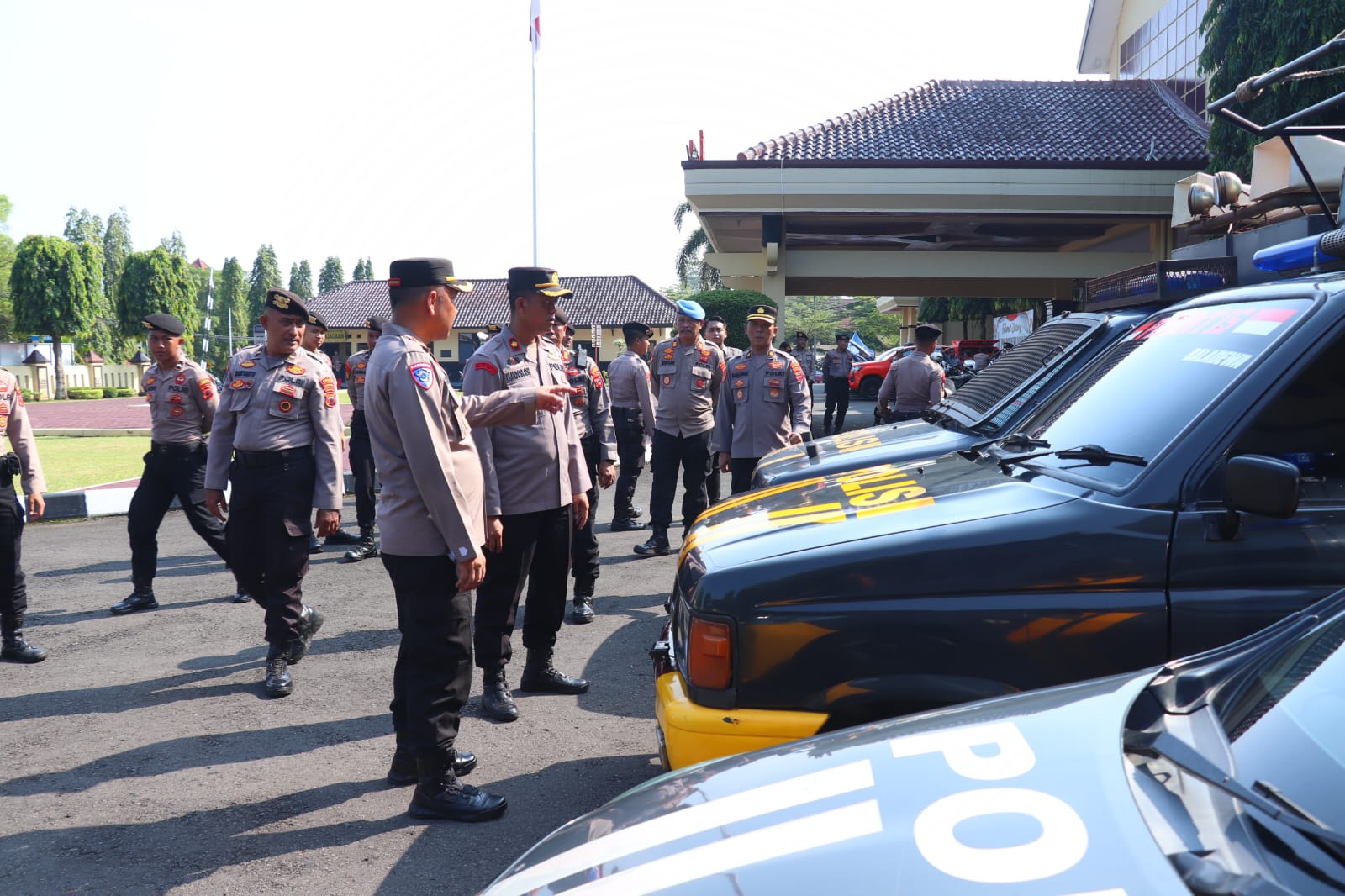 Usai apel, AKBP Doni bersama para pejabat utama (PJU) Polres melakukan pengecekan terhadap perlengkapan dan kendaraan dinas guna memastikan kesiapan operasional satuan.