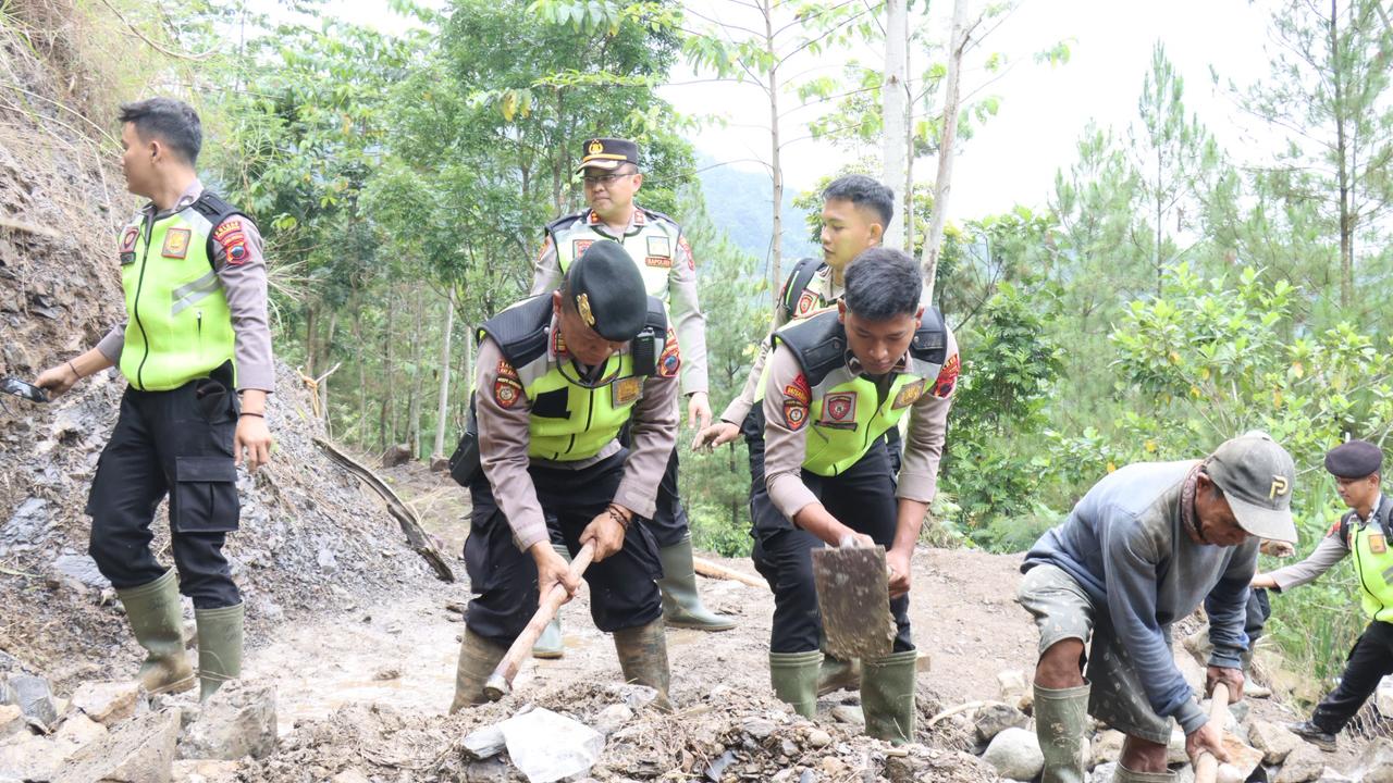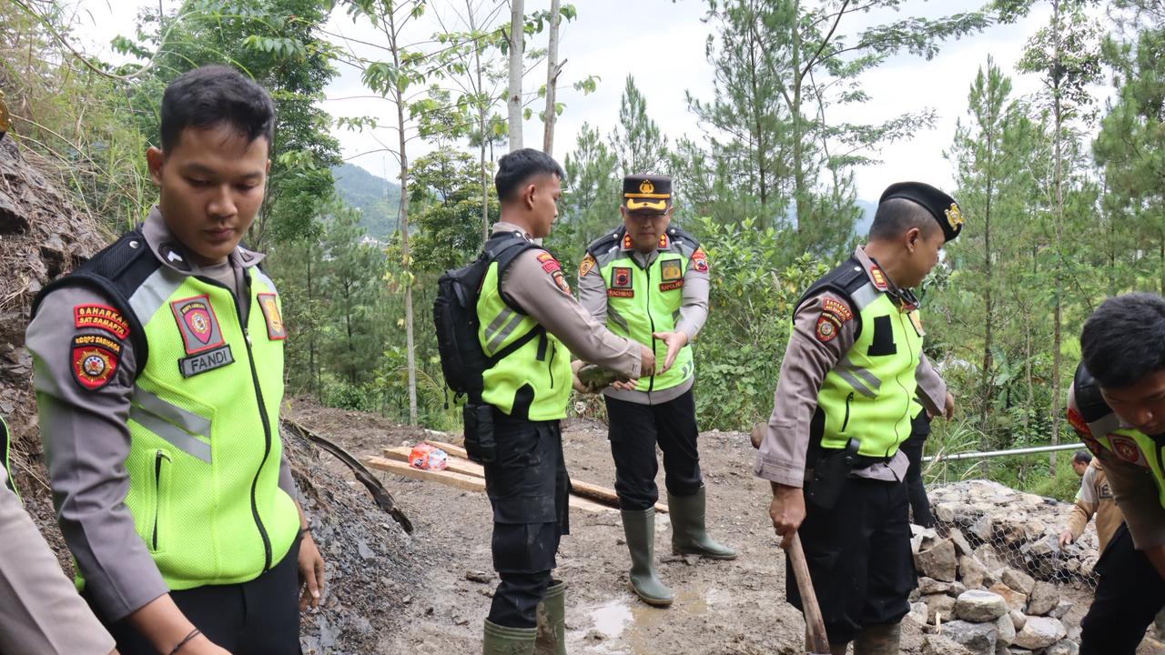 Dalam kunjungannya, AKBP Rachmad tidak hanya melakukan peninjauan, tetapi juga aktif memimpin kerja bakti serta membantu warga yang melintas di sekitar lokasi pembangunan.