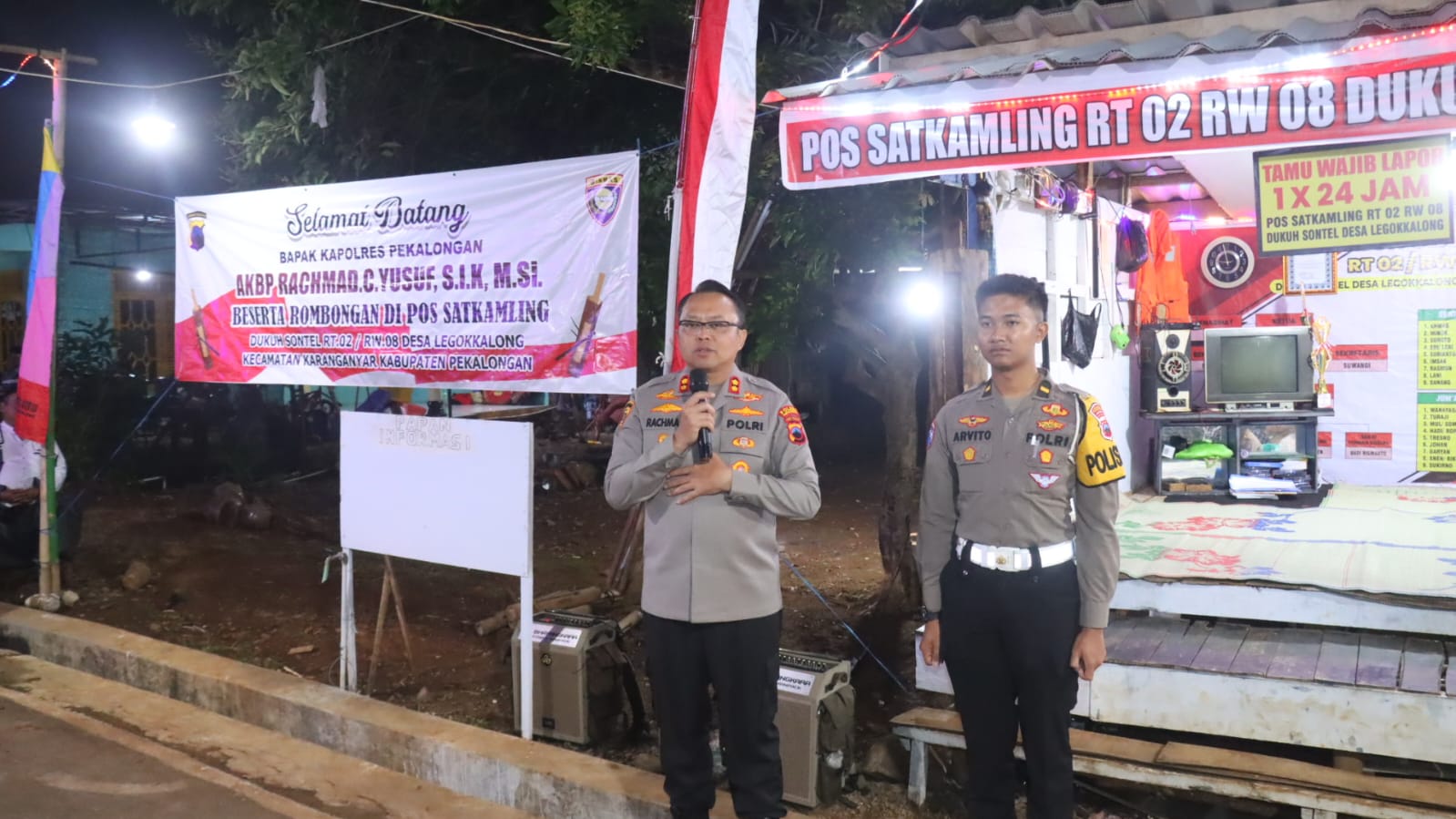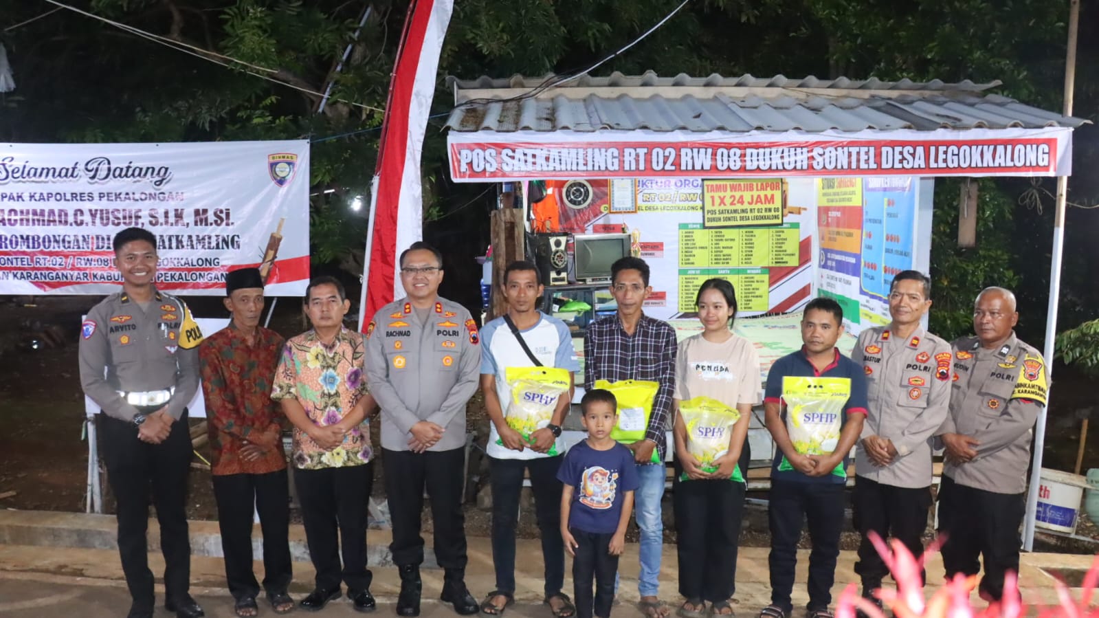 – Kapolres Pekalongan AKBP Rachmad C. Yusuf, S.I.K., M.Si bersama sejumlah PJU Polres melakukan kunjungan sekaligus pengecekan sarana dan prasarana Satuan Keamanan Lingkungan (Satkamling) di Dukuh Sontel, Desa Legokkalong, Kecamatan Karanganyar, Kabupaten Pekalongan, Selasa (09/09/2025) malam.