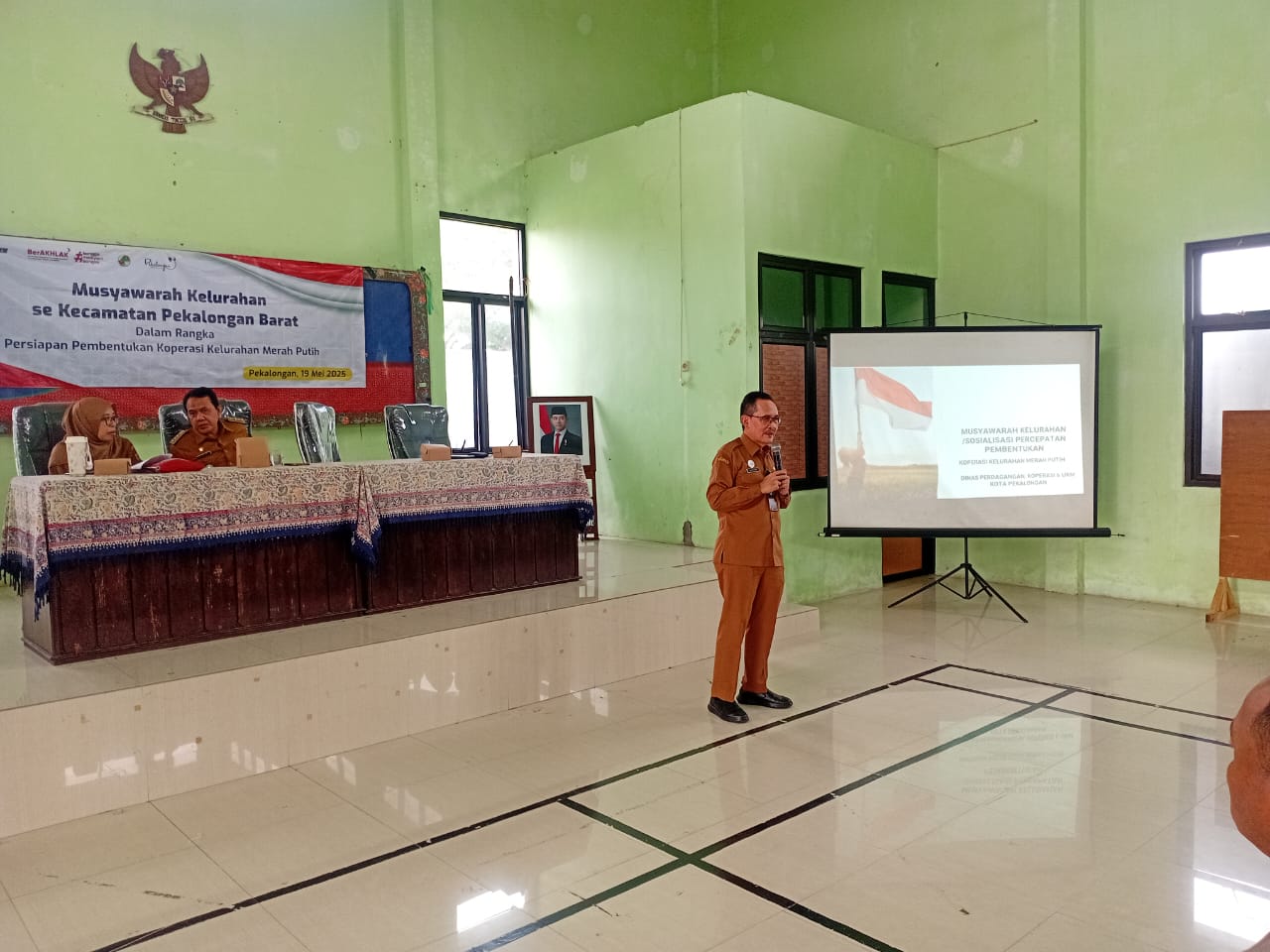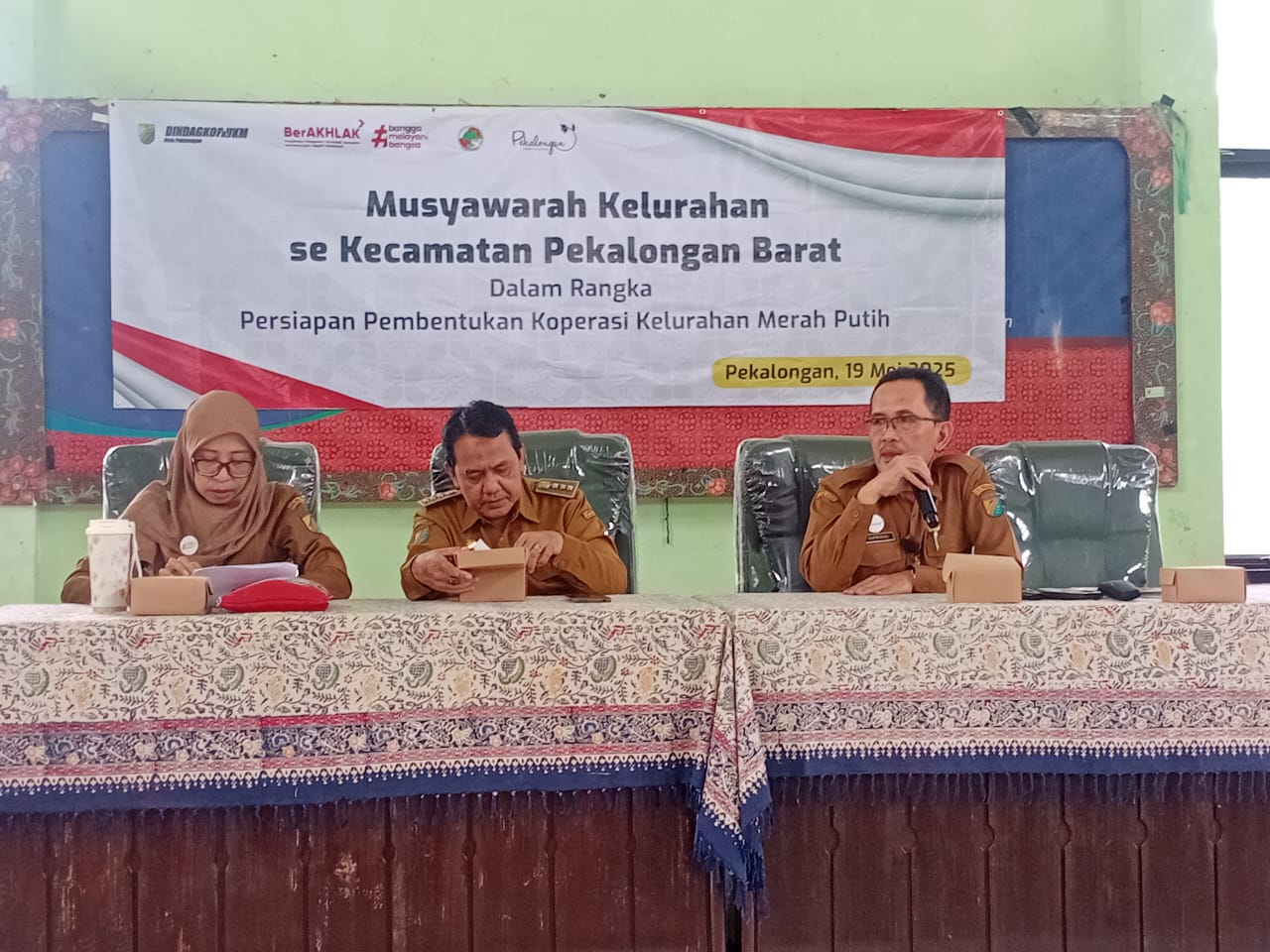 -Camat Pekalongan Barat, Kota Pekalongan, Drs. Much. Natsir, M.Si membuka Rapat Koordinasi dan Musyawarah Kelurahan dalam rangka persiapan Pembentukan Koperasi Desa/Kelurahan Merah Putih, di Aula Camat Pekalongan Barat, pada Senin (19/5/2025).