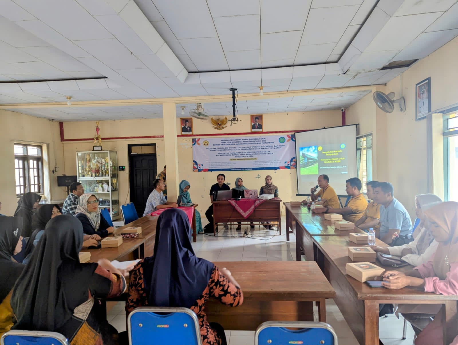 Pelatihan ini diikuti oleh kurang lebih 10 orang pengelola BUMDes Tirta Arum dan menghadirkan narasumber dari kalangan dosen dan mahasiswa Universitas Pekalongan.