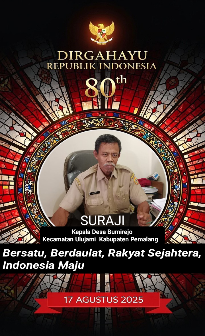 Mari kita jadikan momentum kemerdekaan ini sebagai semangat untuk terus membangun desa, memperkuat persatuan, dan mewujudkan kesejahteraan bagi seluruh masyarakat Desa Bumirejo.
