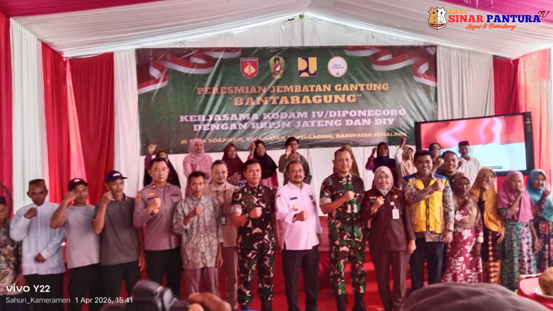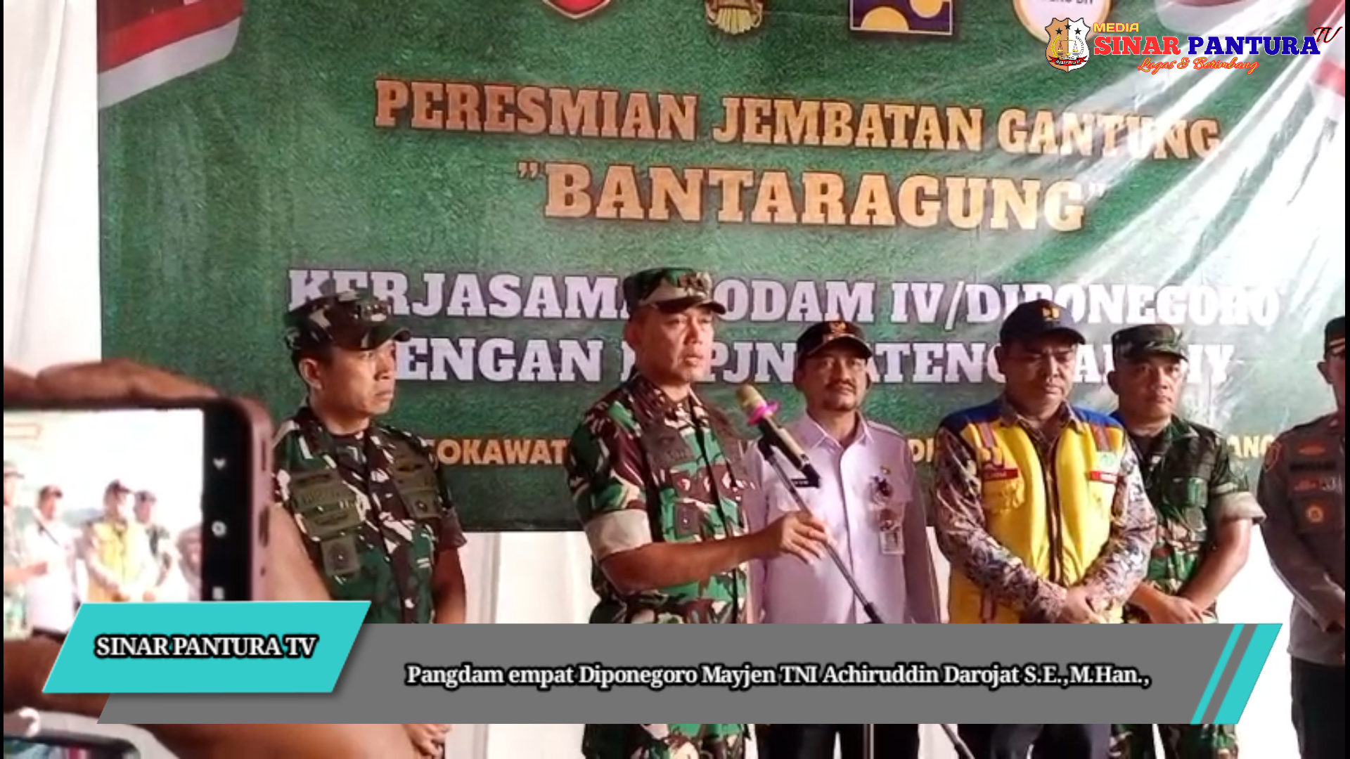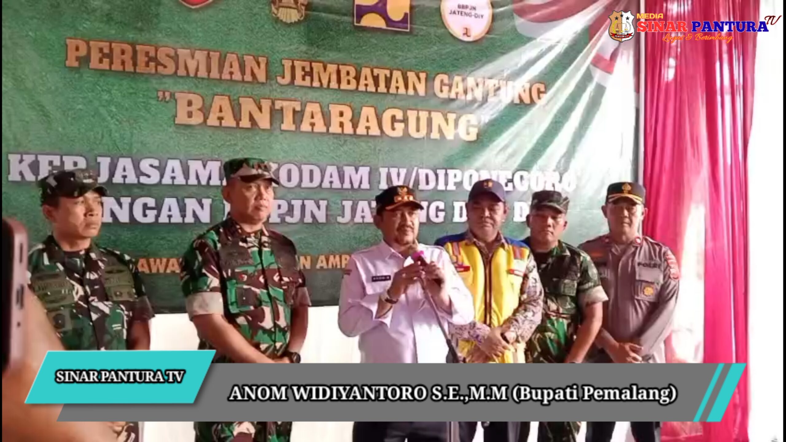 —Panglima Kodam IV Diponegoro Mayor Jendral TNI Achiruddin Darojat S.E.,M.,Han., meresmikan jembatan gantung didusun Bantaragung, Desa Sokawati, Kecamatan Ampelgading, Kabupaten Pemalang.