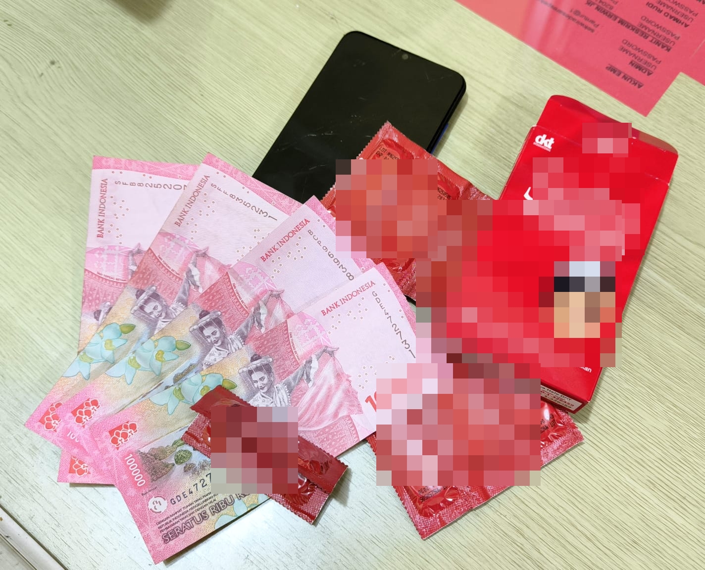 Dalam operasi tersebut, petugas turut mengamankan sejumlah barang bukti yang diduga berkaitan dengan aktivitas prostitusi, di antaranya satu pack alat kontrasepsi serta uang tunai sebesar Rp400 ribu.