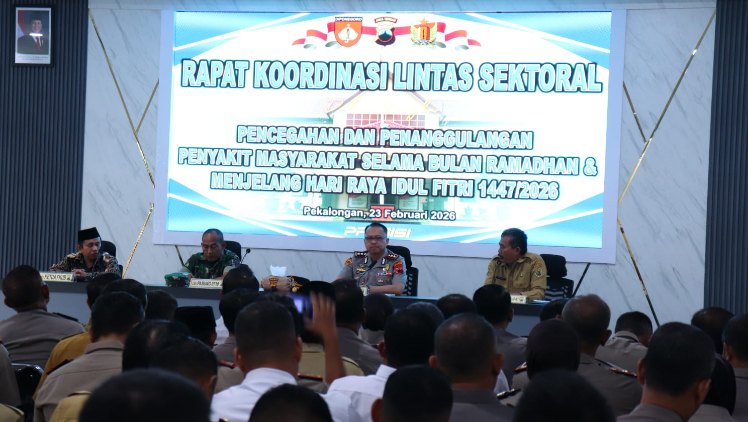 – Polres Pekalongan menggelar Rapat Koordinasi (Rakor) Lintas Sektoral dalam rangka pencegahan dan penanggulangan penyakit masyarakat selama bulan suci Ramadhan serta menjelang Hari Raya Idul Fitri 1447 H/2026 M. Kegiatan tersebut berlangsung pada Senin (23/2/2026) di Aula Setia Polres Pekalongan.