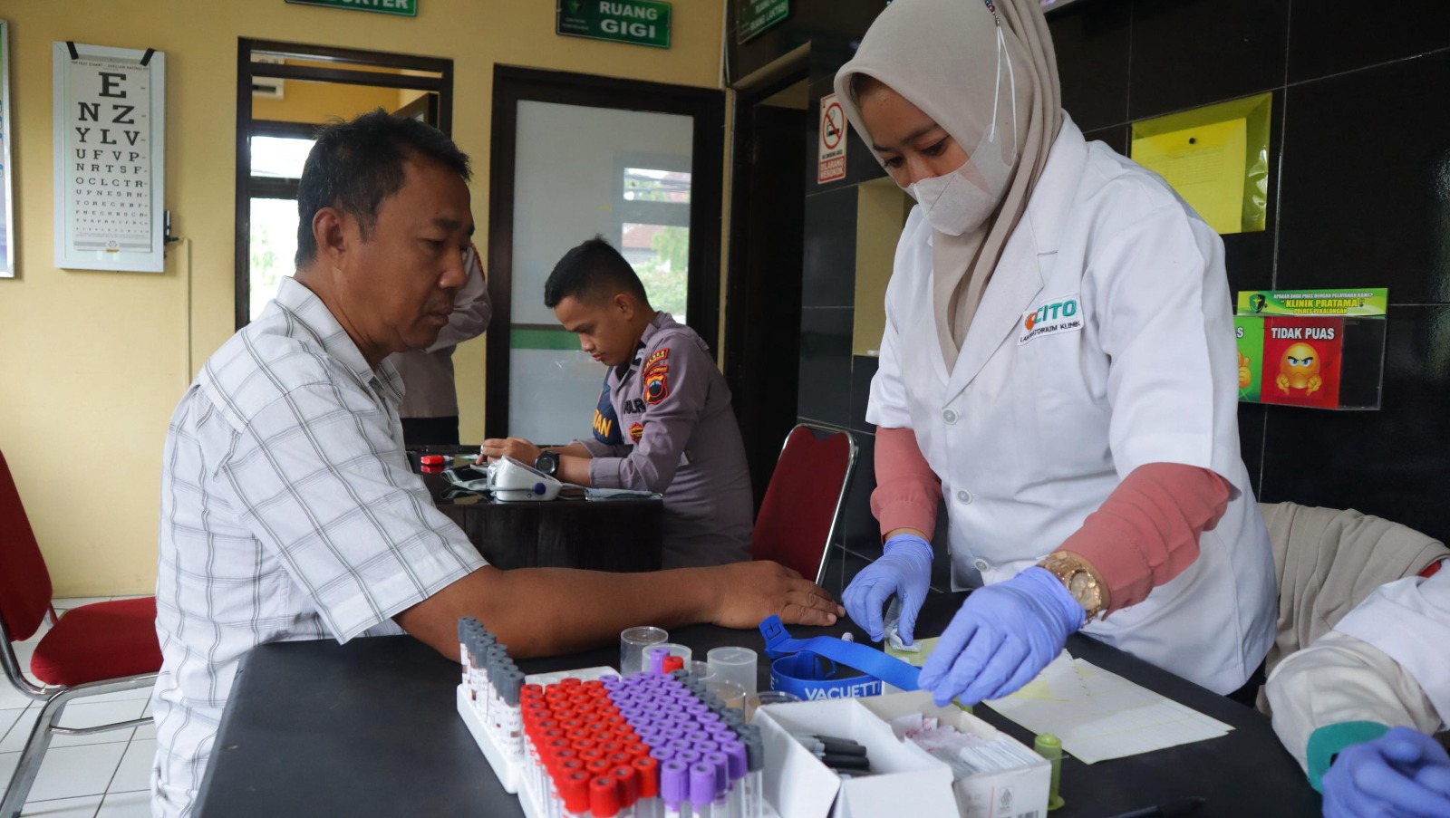 Kepolisian Resor (Polres) Pekalongan melalui Seksi Kedokteran dan Kesehatan (Sie Dokkes) menggelar pemeriksaan kesehatan rutin bagi peserta Program Pengelolaan Penyakit Kronis (Prolanis) di Klinik Polres Pekalongan, Rabu (17/09/2025). Kegiatan ini menjadi bagian dari upaya preventif dalam menjaga kesehatan anggota, khususnya penderita penyakit kronis seperti diabetes dan hipertensi.