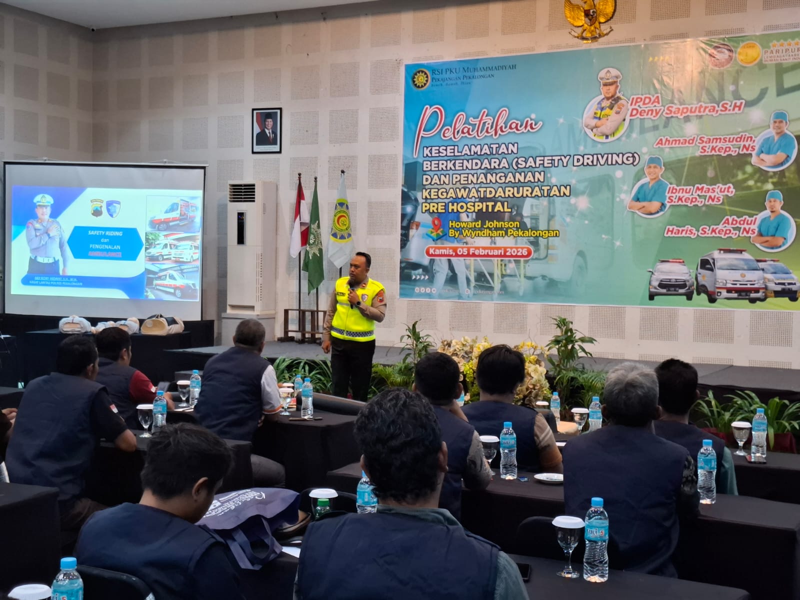 Kegiatan ini turut dihadiri Wakil Direktur RSI PKU Muhammadiyah Pekajangan drg. Afaf, M.M., serta Ketua Panitia dr. Amri Ash Shiddiq. Dalam sambutannya, pihak rumah sakit mengapresiasi sinergi dengan kepolisian sebagai upaya nyata meningkatkan kompetensi pengemudi ambulans di lapangan.