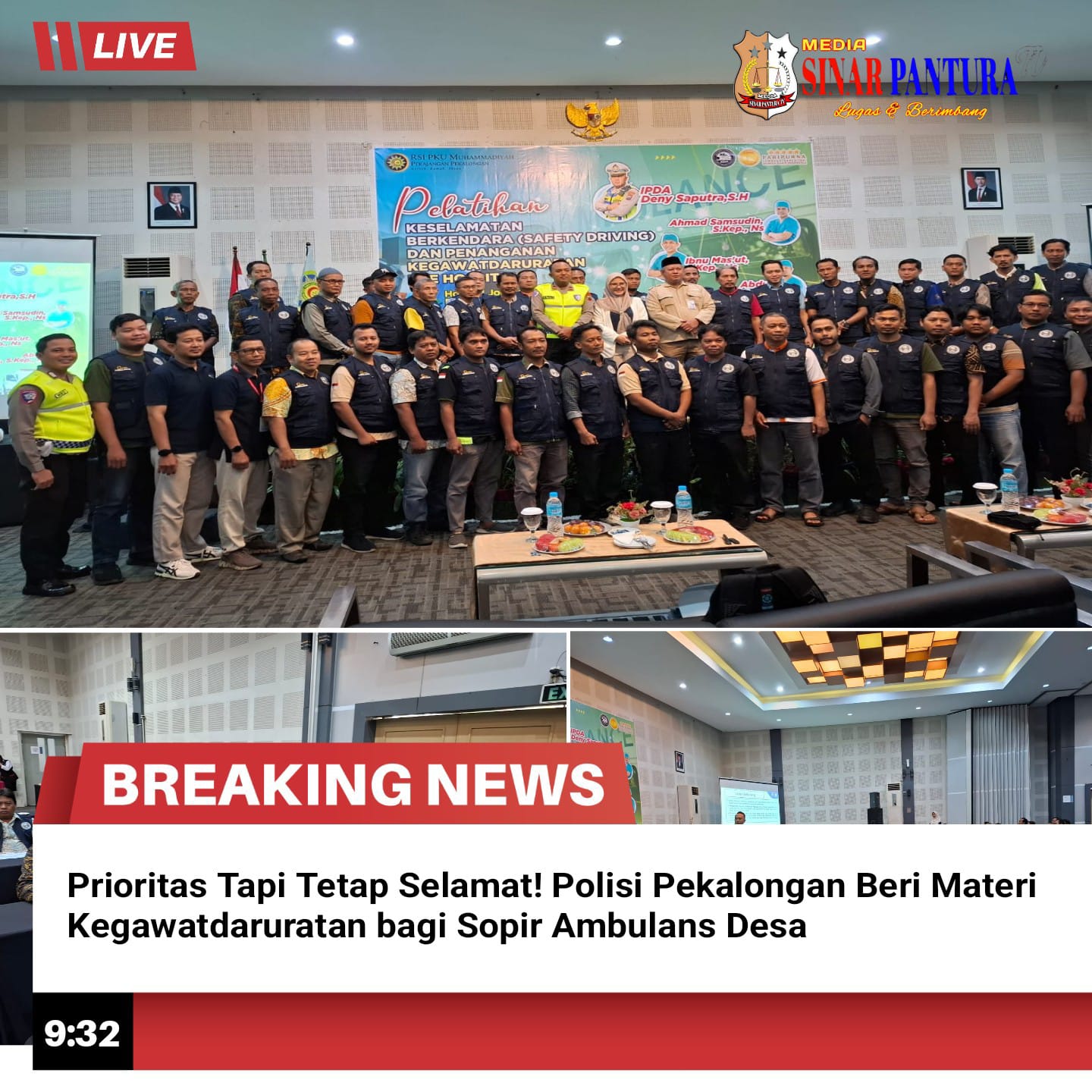 – Mengemudikan ambulans di tengah situasi darurat bukan semata soal kecepatan, melainkan bagaimana keselamatan jiwa tetap terjaga di jalan raya. Menyadari pentingnya hal tersebut, Satlantas Polres Pekalongan menggelar Pelatihan Safety Driving dan Kegawatdaruratan Pre-Hospital bagi puluhan pengemudi ambulans desa se-Kabupaten Pekalongan. Kegiatan ini berlangsung di Ballroom Hotel Howard Johnson, Kamis (5/2/2026).