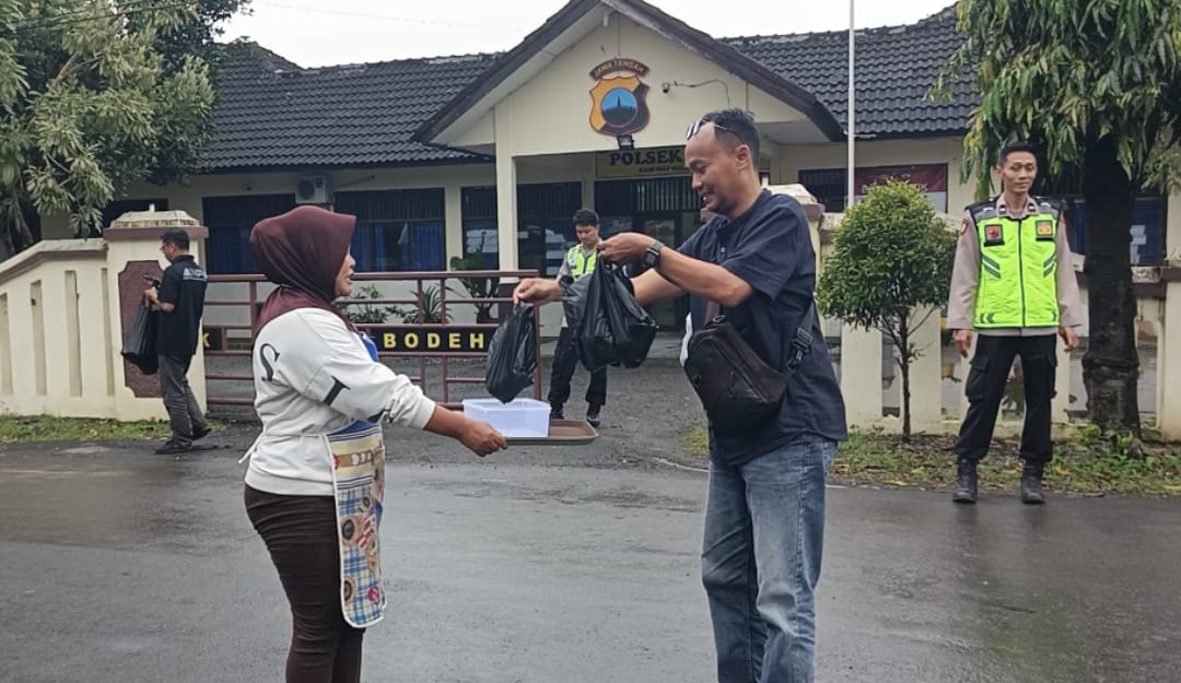 – Aliansi Wartawan Pantura Bersatu (Aliansi Wartawan Pantura Bersatu/AWPB) bersama Polsek Bodeh, jajaran Polres Pemalang, menggelar aksi sosial dengan membagikan ratusan paket takjil kepada masyarakat, Jumat (27/2/2026) sore. Kegiatan tersebut berlangsung di depan Mapolsek Bodeh dan menyasar para pengguna jalan yang melintas menjelang waktu berbuka puasa.