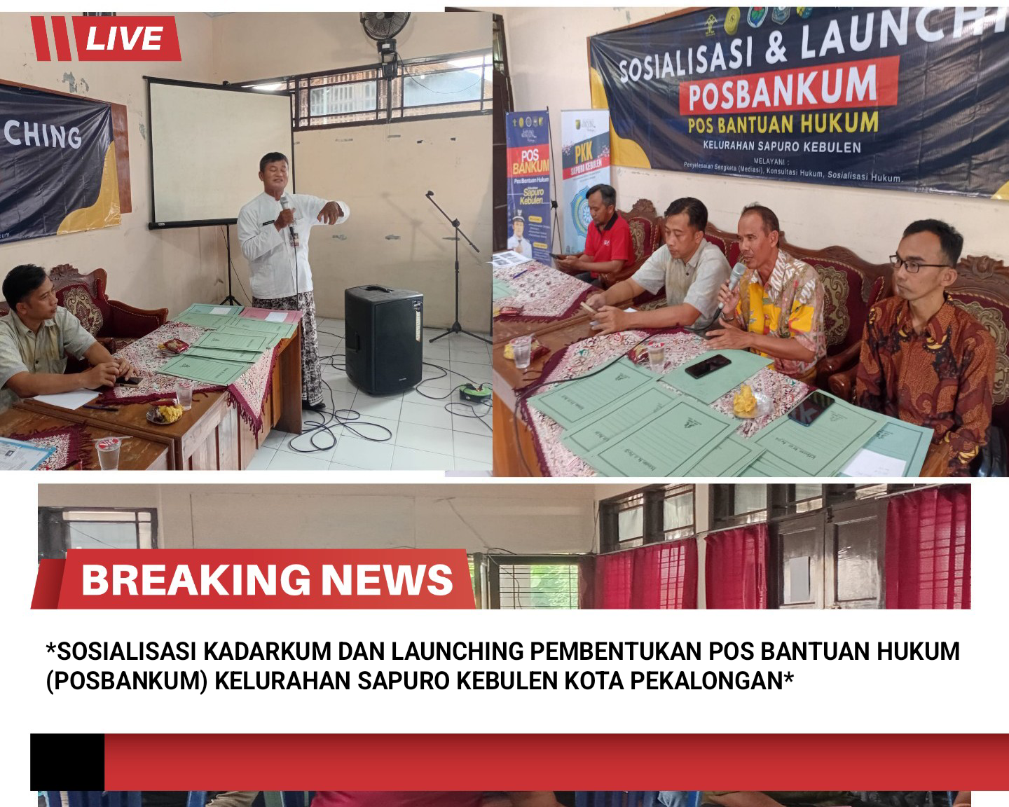 *SOSIALISASI KADARKUM DAN LAUNCHING PEMBENTUKAN POS BANTUAN HUKUM (POSBANKUM) KELURAHAN SAPURO KEBULEN KOTA PEKALONGAN*