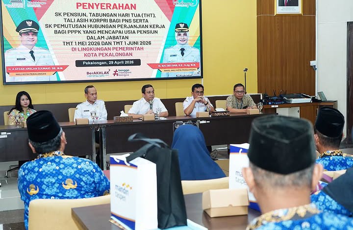 Pemerintah Kota Pekalongan menggelar penyerahan Tabungan Hari Tua (THT) sekaligus pemutusan kontrak tugas bagi Pegawai Pemerintah dengan Perjanjian Kerja (P3K) dan P3K Paruh Waktu di Ruang Buketan Setda Kota Pekalongan, Rabu (29/4/2026).